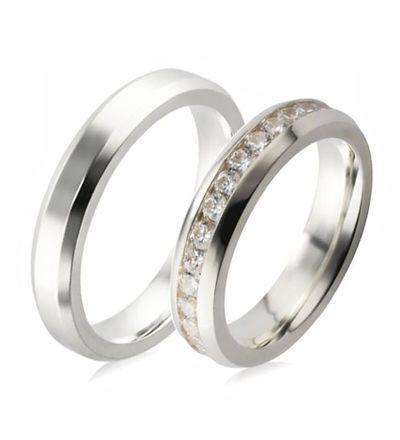 Alianças Chanfradas 4mm com Zircônias Prata - VJTRIL02a (par)