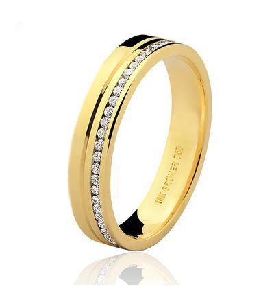 Aliança Anatômica 4mm com Brilhantes Ouro 18K - VJ0253P (Unitário)
