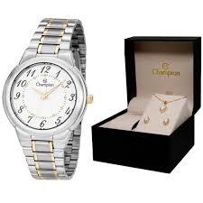Relógio CHAMPION Feminino Kit Colar e Brincos CH22368D