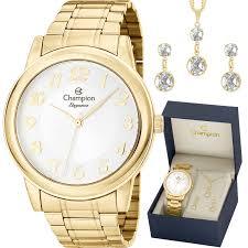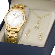 Relógio CHAMPION Feminino Kit Colar e Brincos CN26804W