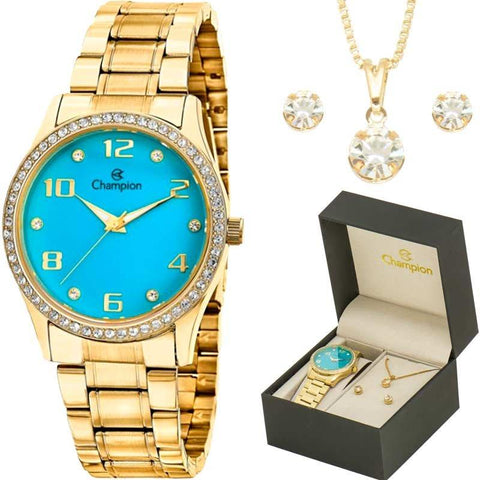 Relógio Champion Feminino Kit Colar e Brincos CN29089Y