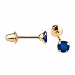 Brinco Infantil Pedra 3mm Zircônia Azul Marinho Ouro 18K - VJBR012-AM