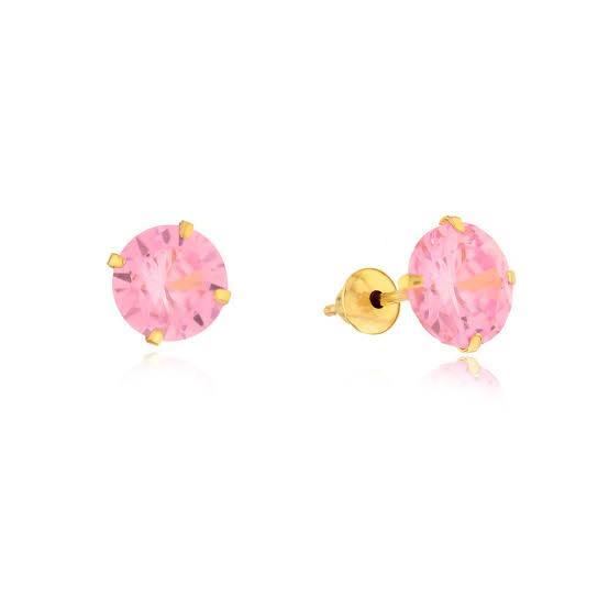 Brinco Pedra 5mm Zircônia Rosa Ouro 18K - VJBR424-P