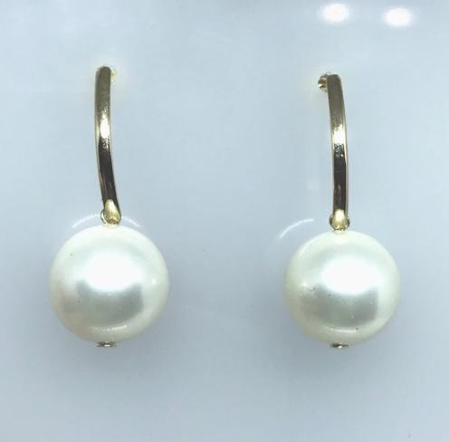 Brinco Pingente 13mm Pérola Shell Ouro 18K - VJBR666