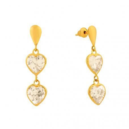 Brinco Pingente 2 Corações 6MM Zircônia Branco 18K - VJBR082-Z
