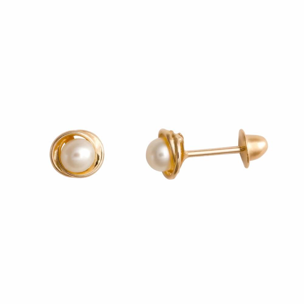 Brinco Torcidinho Pérola 3mm Ouro 18K - VJBR048